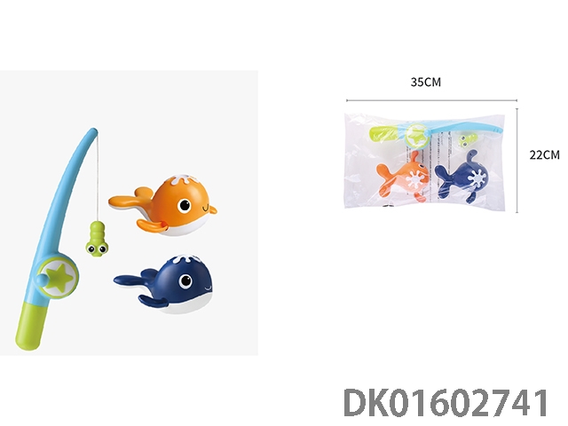 Frog net fishing with fishing rod and 2 fish (deep blue and orange, magnetic)