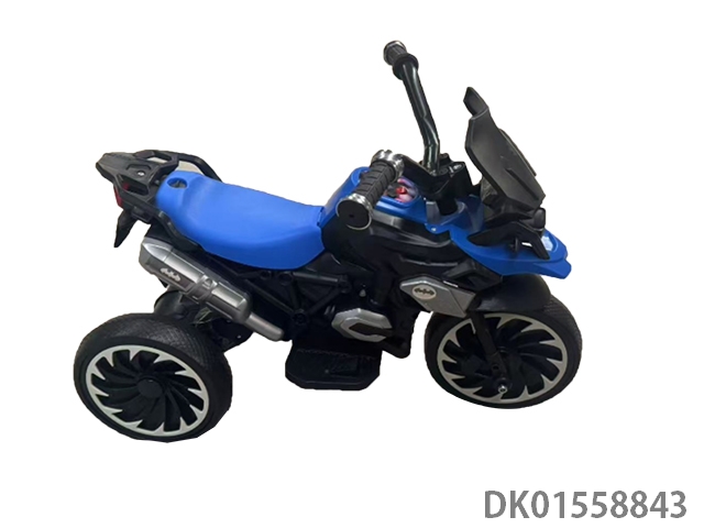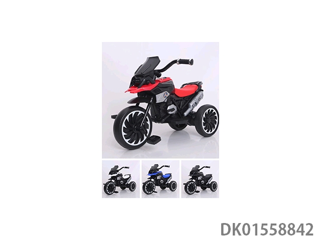 Electric three wheeled motorcycle in blue, red, and green