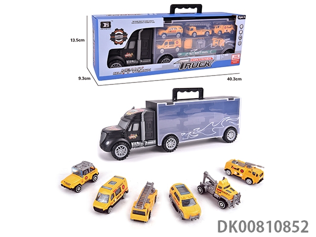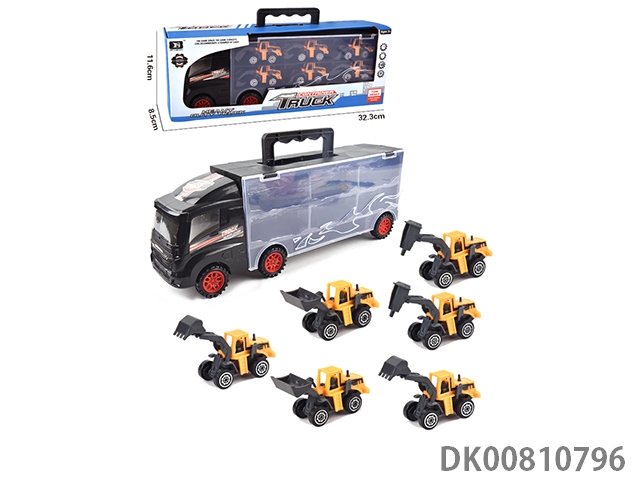 Portable gift box container sliding tractor with 6 sliding engineering vehicles (alloy)