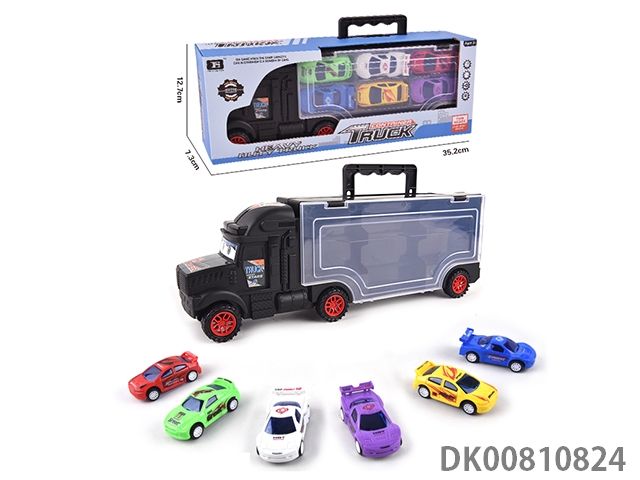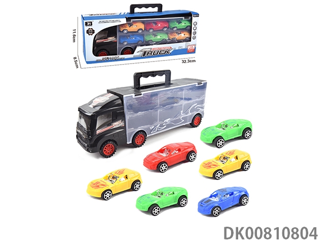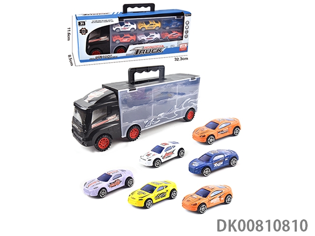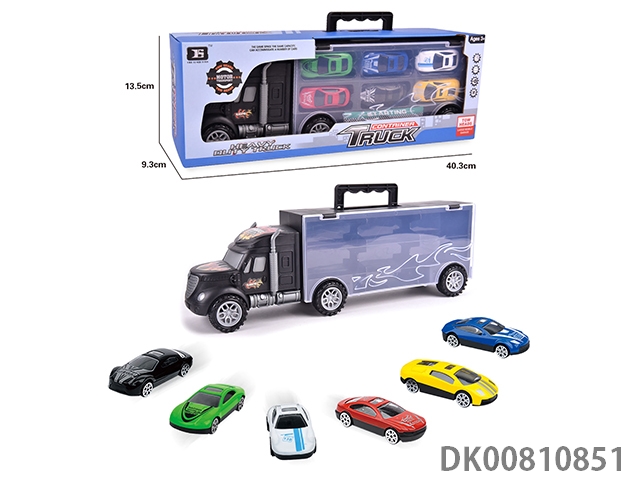 Portable gift box container trailer with 6 alloy racing cars (1 side)