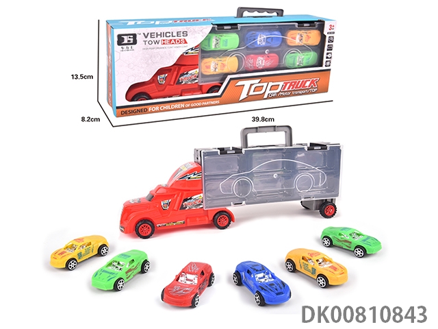 Portable gift box container sliding tractor with 6 return sports cars