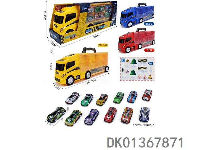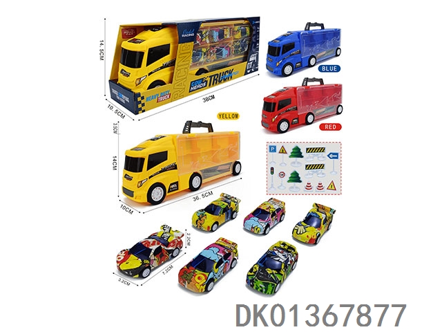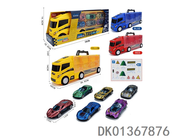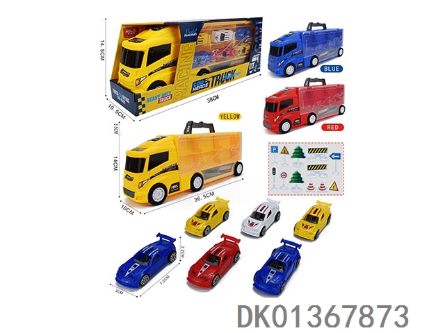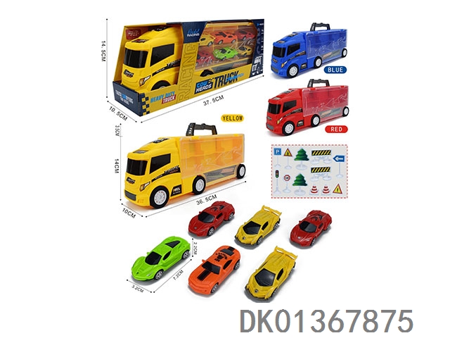 Handheld gift box container sliding trailer with 6 sliding ab sports cars and 12 road signs