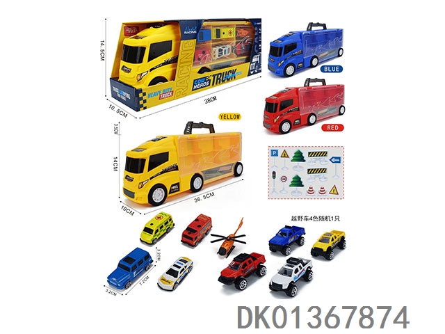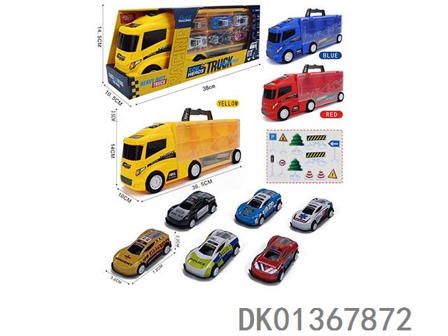 Handheld gift box, container, sliding trailer with 6 rebound iron police cars and 12 road signs