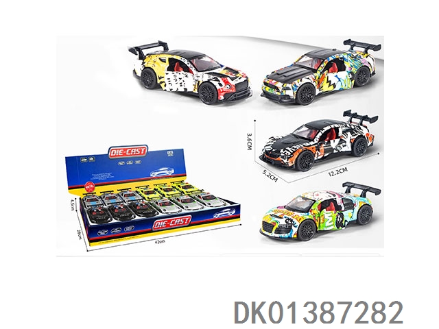 1: 32 Alloy car graffiti sports car (2 types of 4-color mixed) with three door return force 12pcs//box