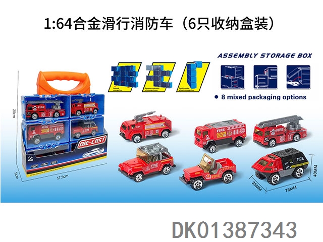 1: 64 Alloy sliding fire truck (6 storage boxes)