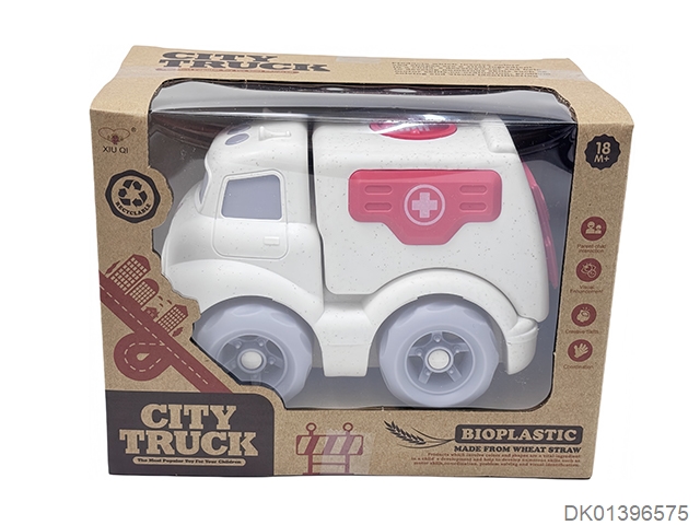 1 Set of wheat straw material display box sliding cartoon car (no sound or light)