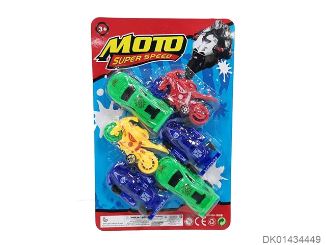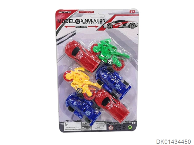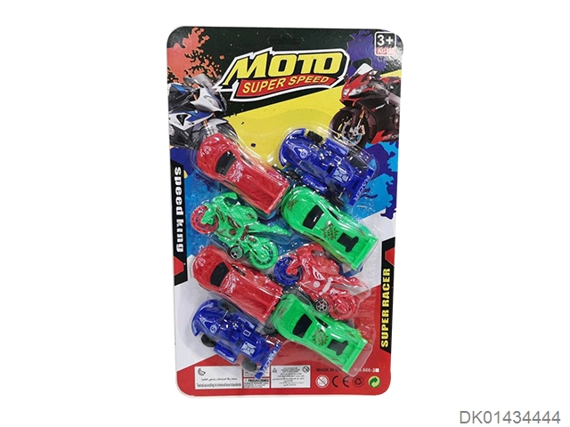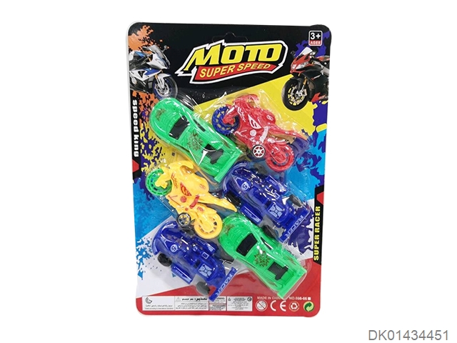 Sliding solid color sports car, motorcycle, go kart (6 pieces)