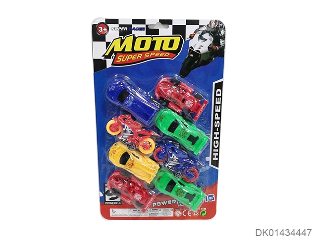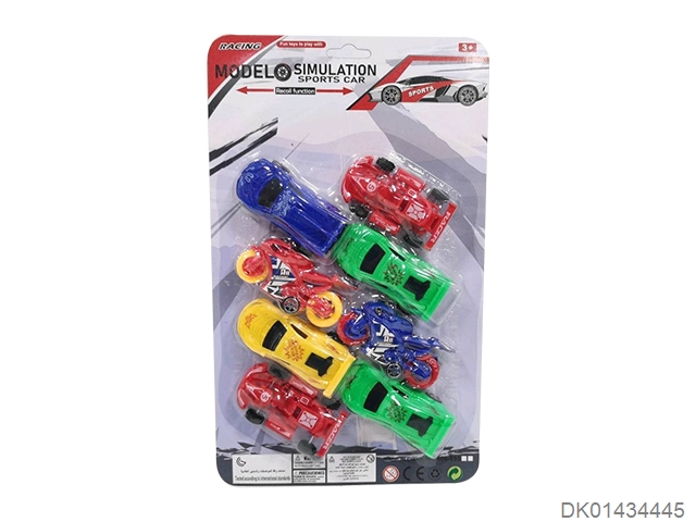 Sliding solid color sports car, motorcycle, go kart (8 pieces)