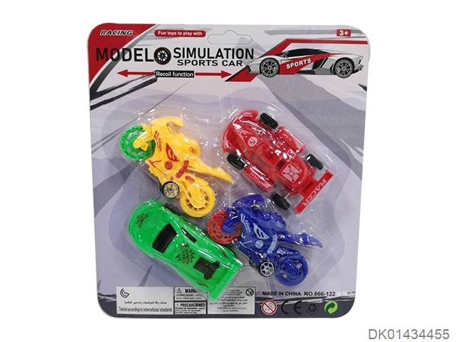 Sliding solid color motorcycle sports car kart (4 pieces)