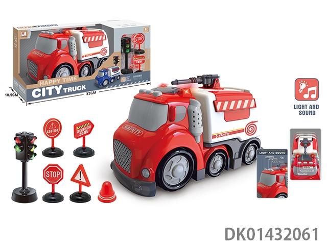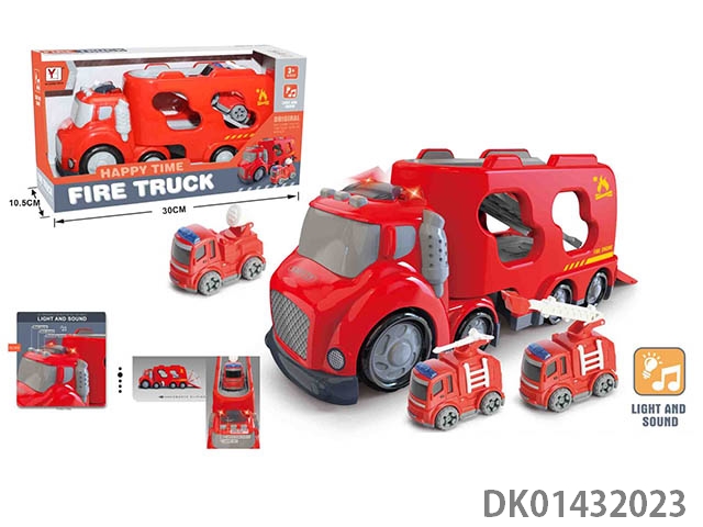 Sliding cartoon sound and light fire truck set