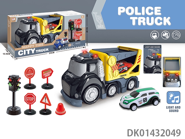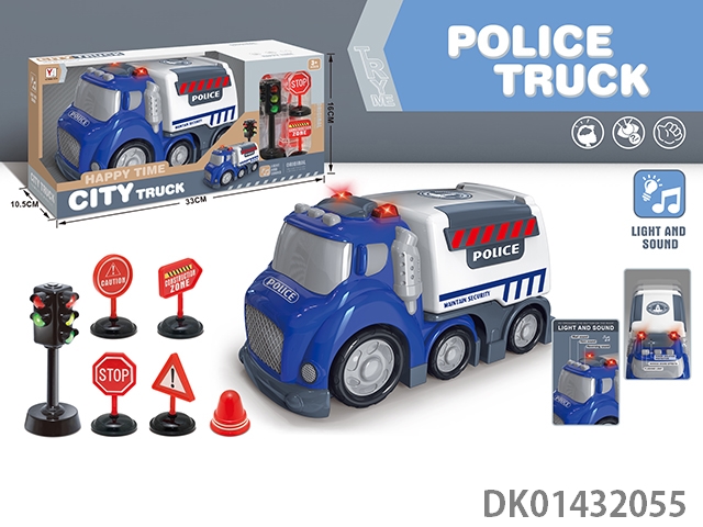 Sliding cartoon sound and light police car set
