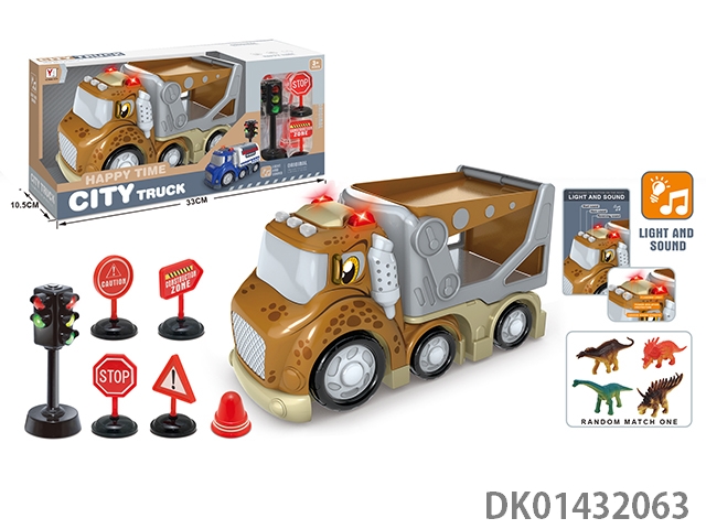 Sliding cartoon sound and light dinosaur car set