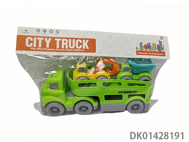 Sliding cartoon trailer transport vehicle (without lighting or music, with 2 sliding vehicles)