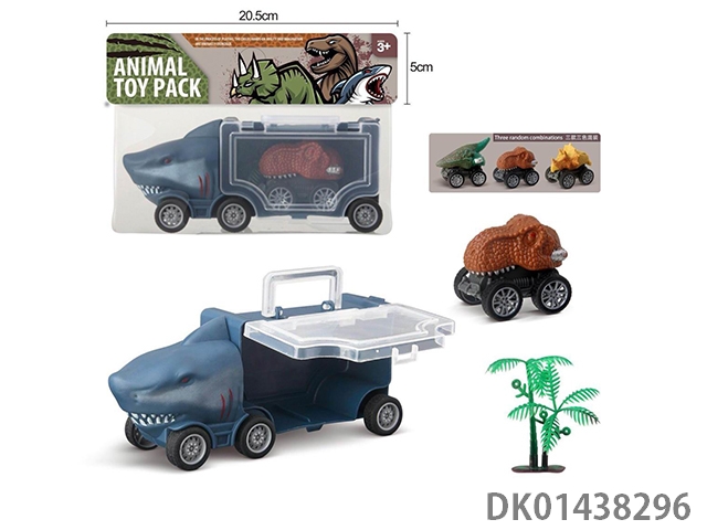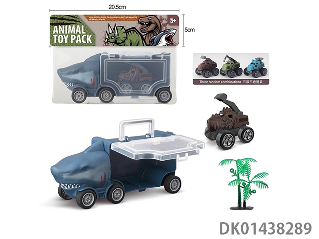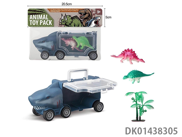 Shark storage car, 2 dinosaur children and 1 tree