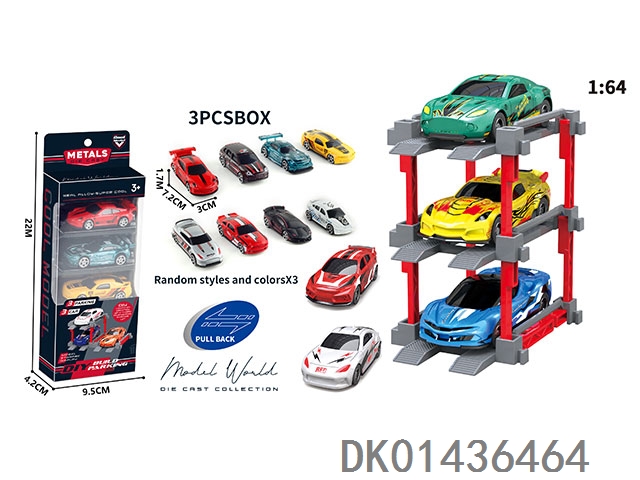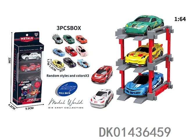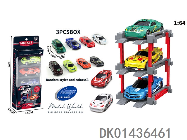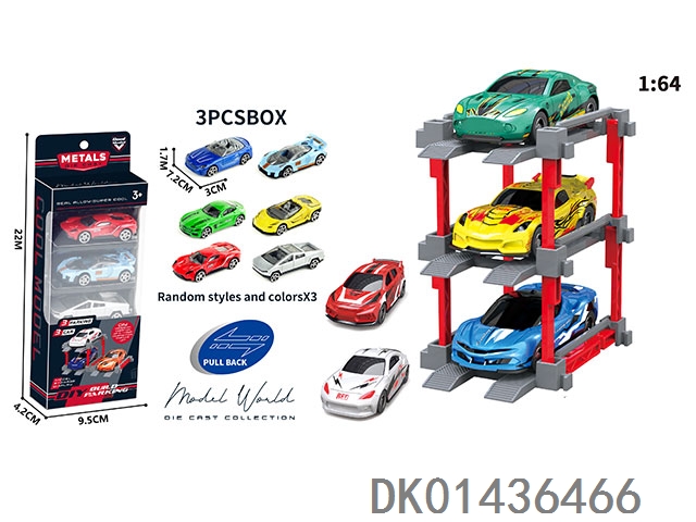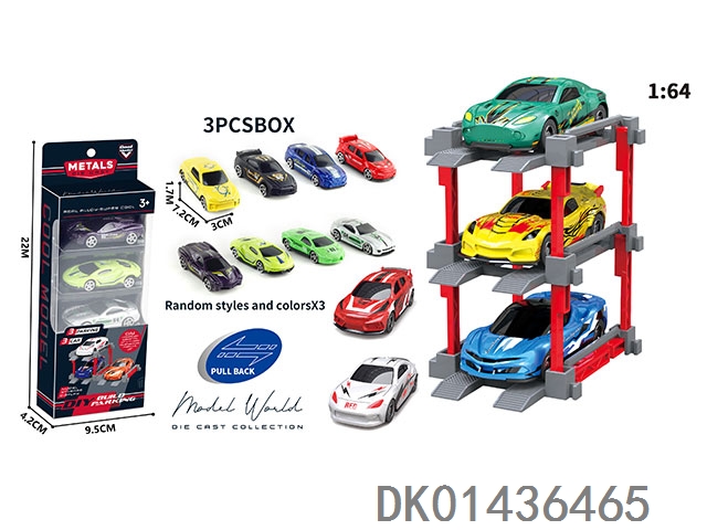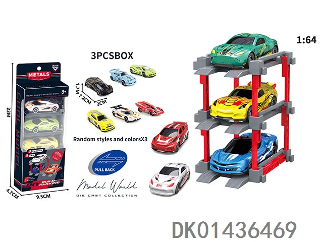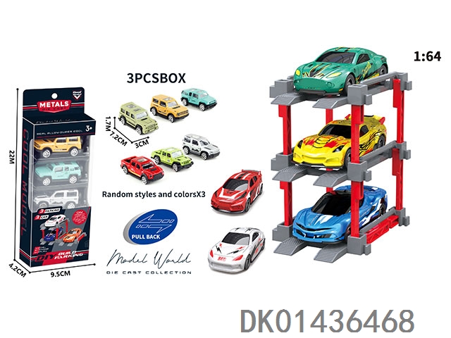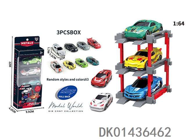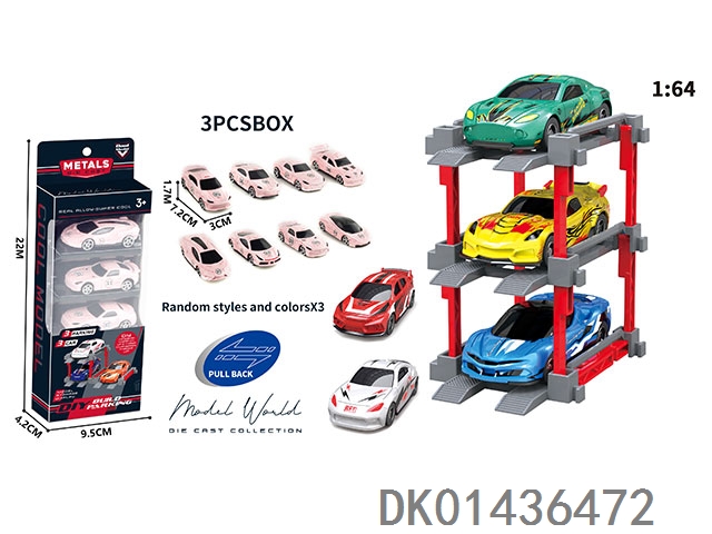 1: 64. Sliding alloy car diy. parking lot package 3 with 3 parking spaces