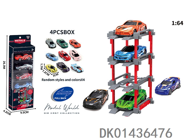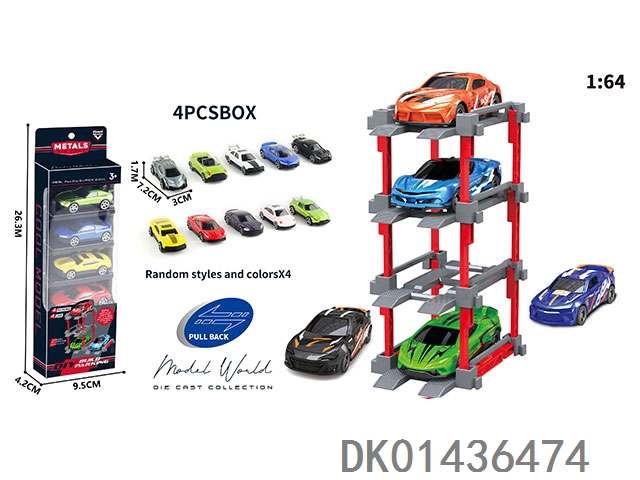 1: 64. Sliding alloy car diy. parking lot package 4 with 4 parking spaces