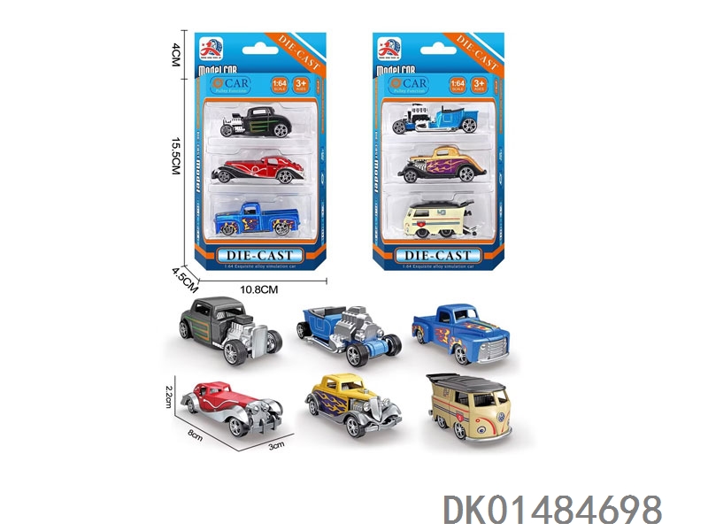 3 Retro alloy sliding cars