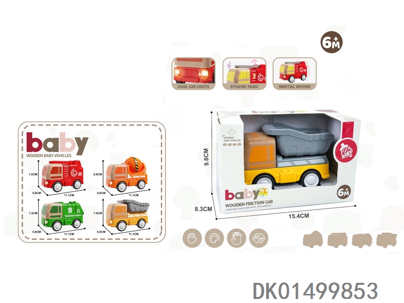 Wooden toy factory (fire truck, dump truck, mud truck, sanitation truck)