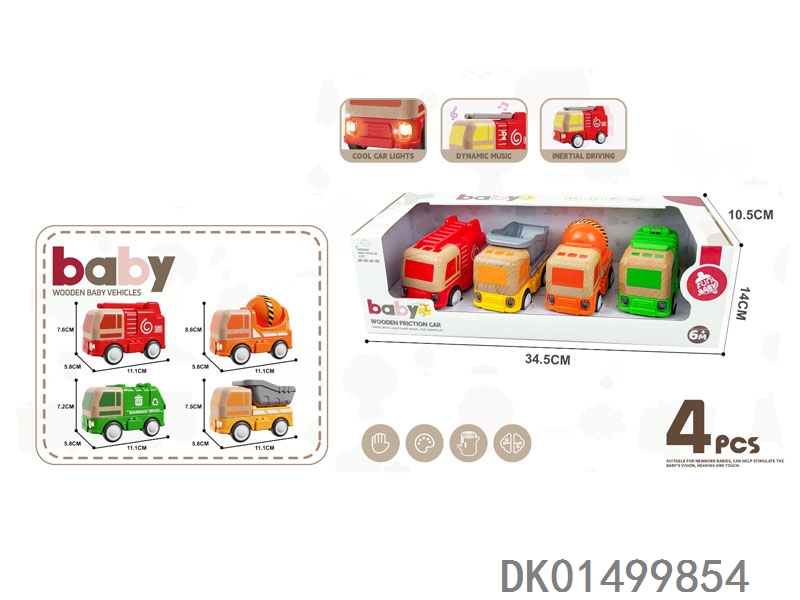 Wooden toy factory 4-piece set (fire truck, dump truck, mud truck, sanitation truck)