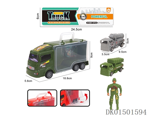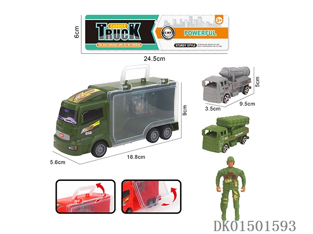 Military storage vehicle and 1 soldier and 1 military vehicle