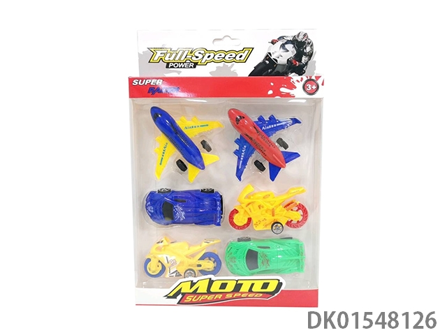 Sliding solid color passenger plane, motorcycle, sports car (6 pieces), 4 models, 4 colors