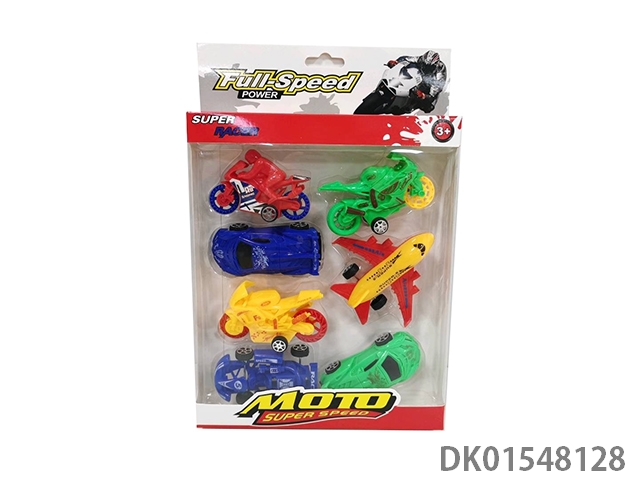 Sliding solid color passenger plane, motorcycle, bus, equation car (5 units), 4 models, 4 colors