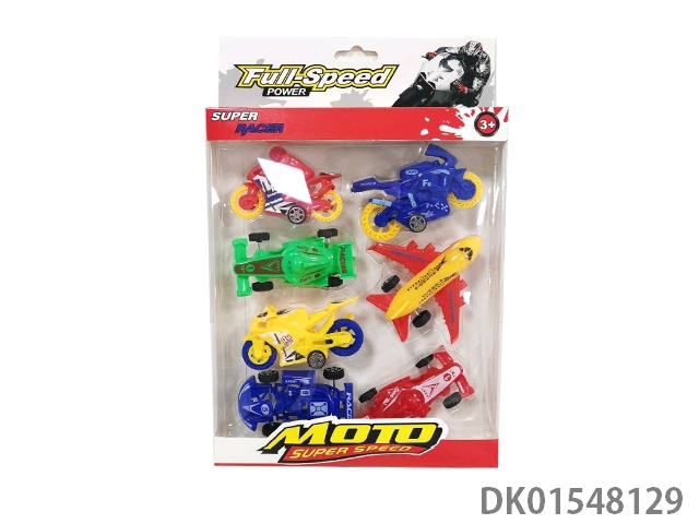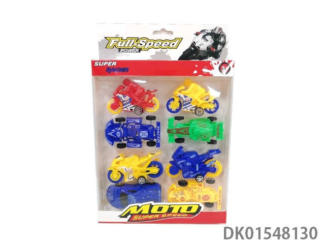 Sliding solid color motorcycle, racing car, equation bike, go kart (8 pieces), 7 models, 4 colors