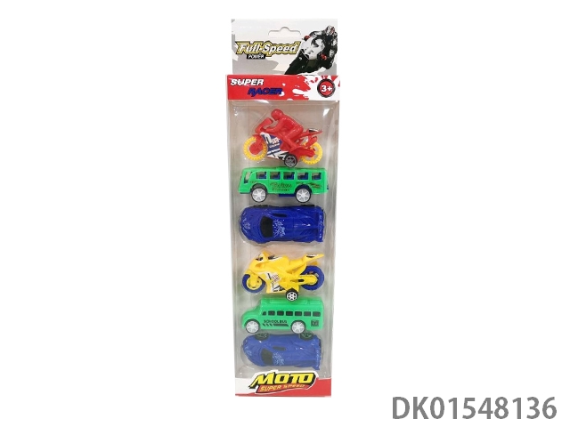 Sliding solid color equation car, school bus, bus, motorcycle (6 units), 5 models, 4 colors