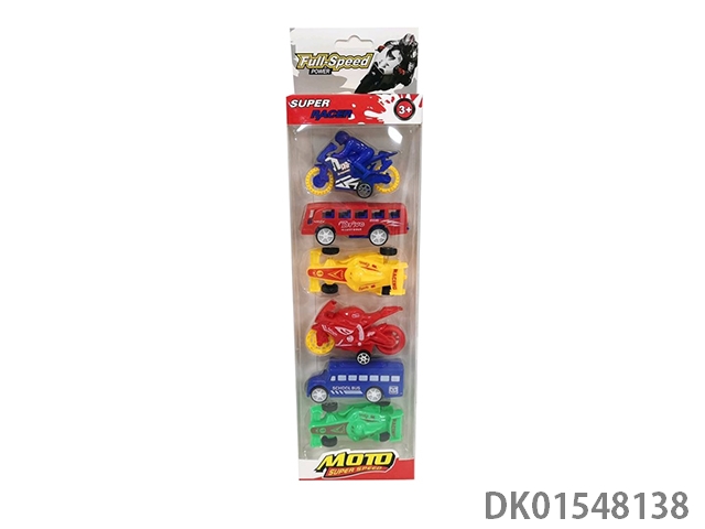 Sliding solid color motorcycle bus sports car school bus (6 pieces) 5 models 4 colors