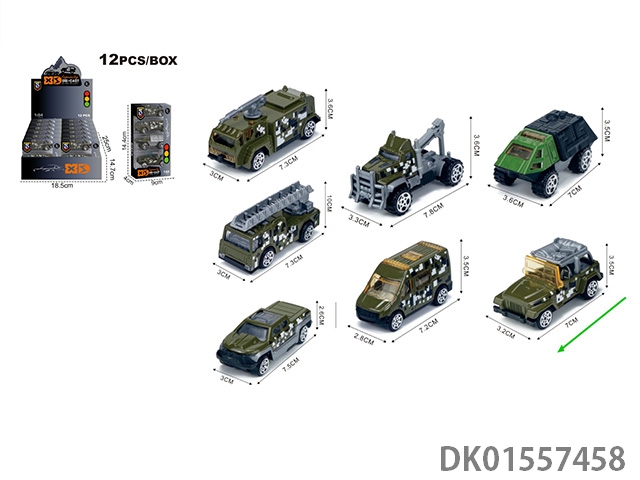 English 1:64 sliding military 7 mixed (3 pieces) car model 12 boxes/display box