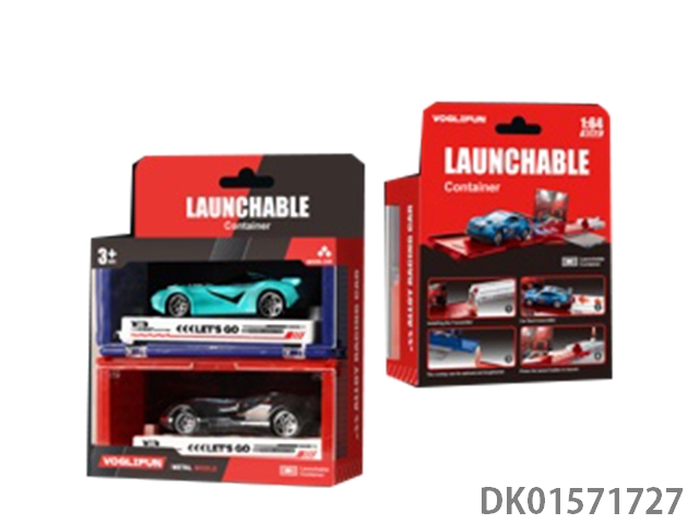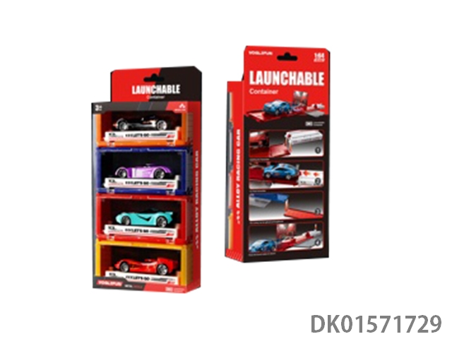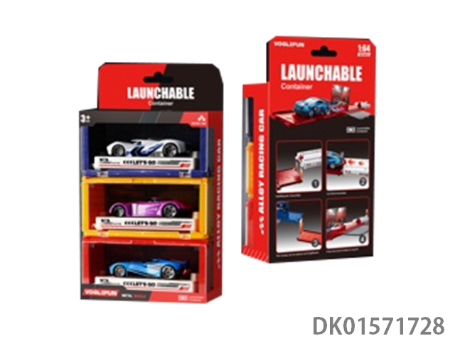 Handheld gift box sliding container truck with 6 sliding alloy racing cars, 6 dinosaurs, and 1 map