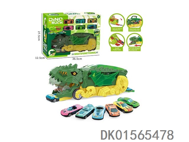Folding sliding catapult dinosaur car (equipped with 3 sliding iron sheet regenerative cars)