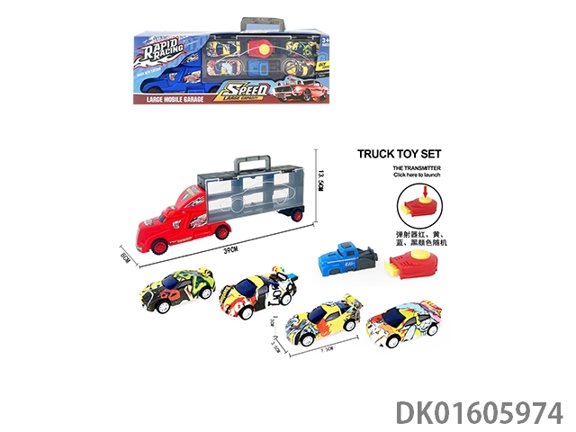 Handheld gift box sliding container truck with 4 sliding ab sports cars and 2 catapults
