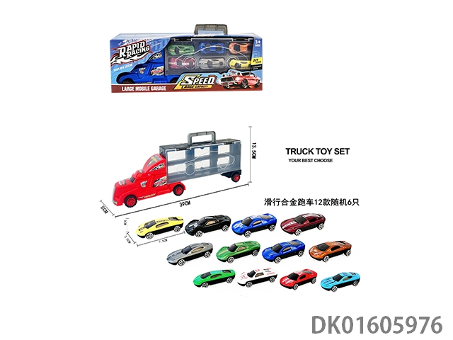 Handheld gift box sliding container truck with 6 sliding alloy sports cars
