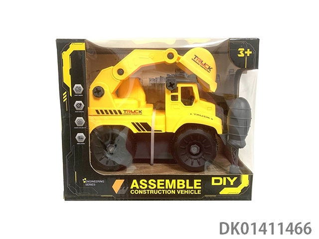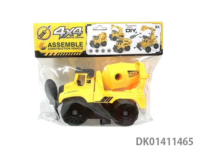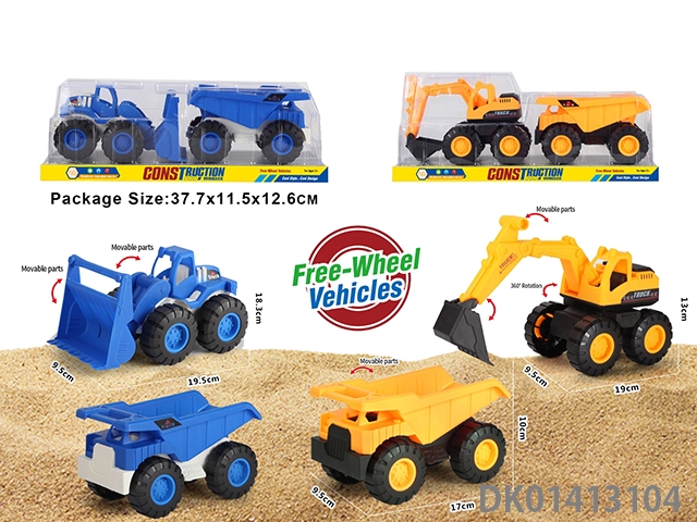 Sliding construction vehicle, mixed with 3 blue and yellow vehicles