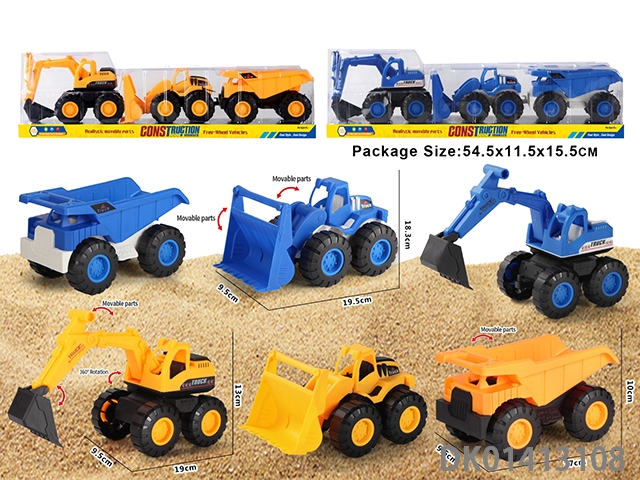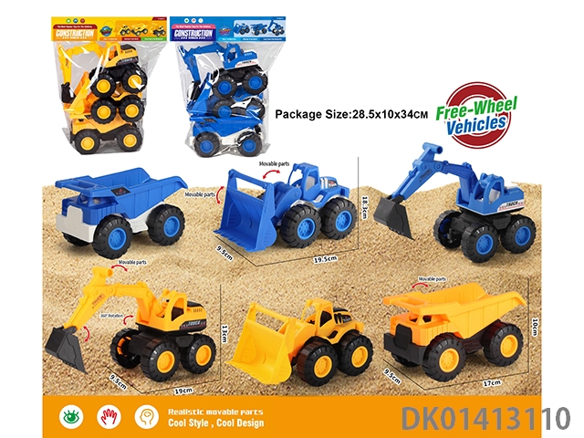 Sliding construction vehicle, mixed with three types of blue and yellow vehicles