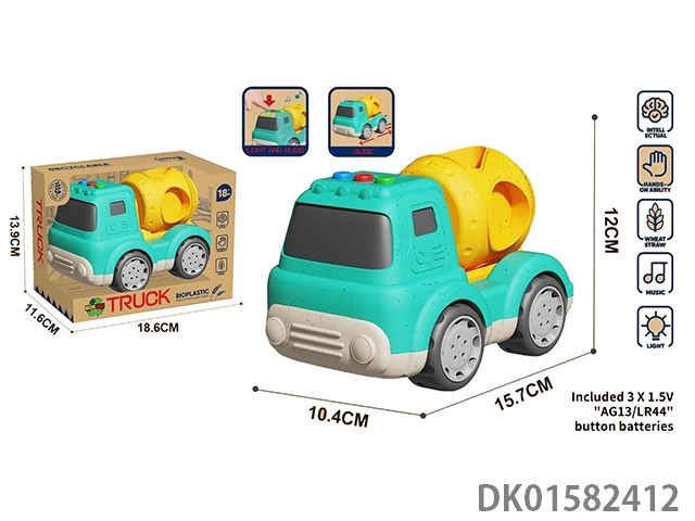Wheat straw cartoon sliding engineering mixer truck (with lighting and music)
