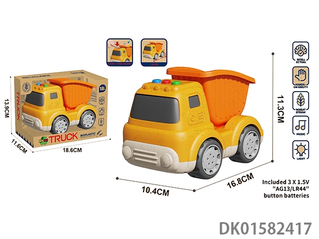 Wheat straw cartoon sliding engineering dump truck (with lighting and music)