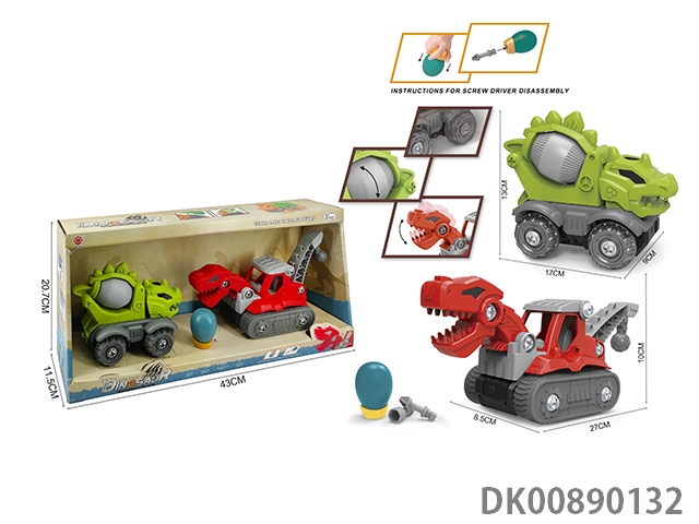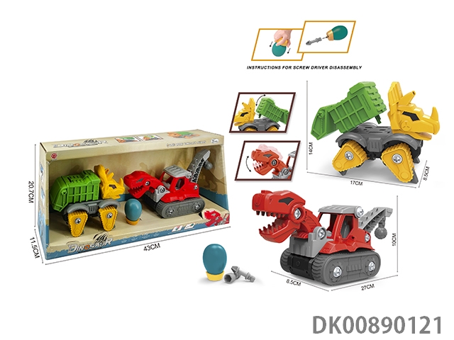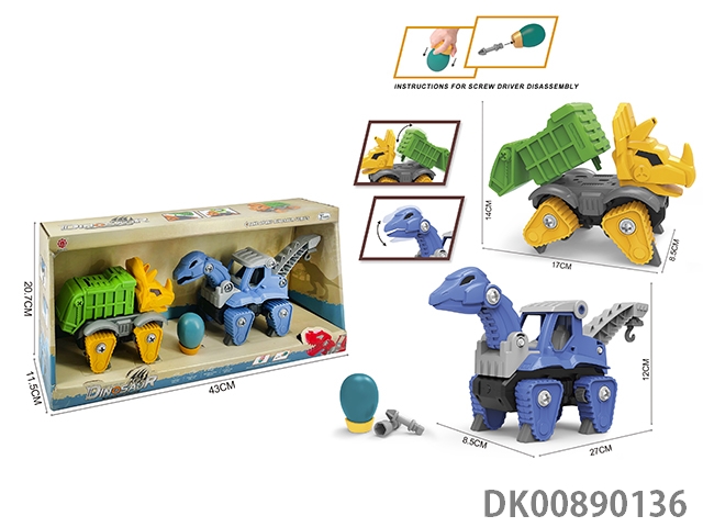 Taxi function diy brachiosaurus engineering vehicle and 3-corner dragon sanitation vehicle 2pcs/box