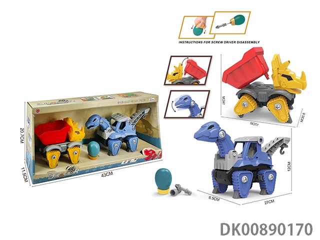 Taxi function and sound diy brachiosaurus engineering vehicle and 3-corner dragon tipper 2pcs/box