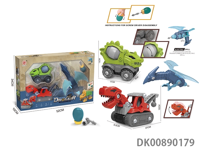 Taxiing function and sound * 4 diy tyrannosaurus rex engineering vehicles, stegosaurus mixer vehicles, brachiosaurus engineering vehicles, triceratops sanitation vehicles and pterosaur deformation electric drills (electric drills do not include 2 * aa)