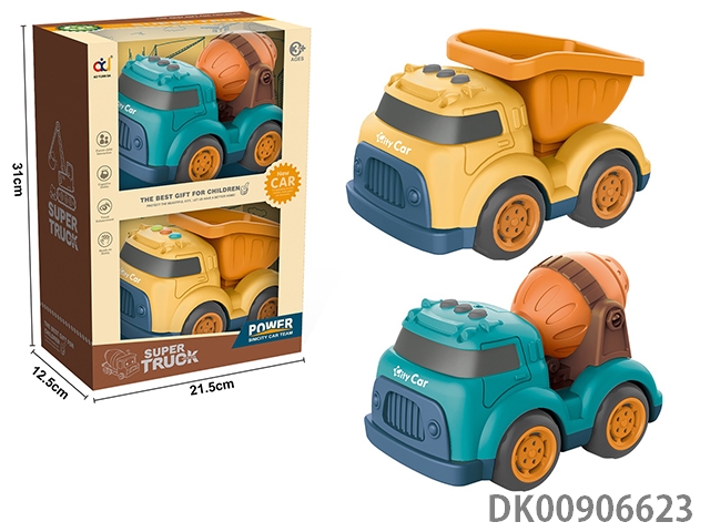 Cartoon taxi engineering vehicle (mixer and soil truck)