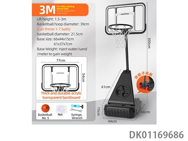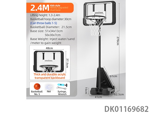 2.4-Meter square bottom basketball rack (with a basketball circle diameter of 30cm and a 20cm basketball)