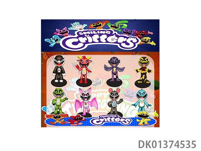 3 Inch smiling small animals, 8 dolls, and 1 base