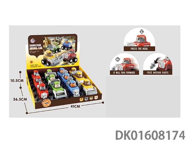 Four mixed press animal engineering vehicles with 12 units12PCS/BOX