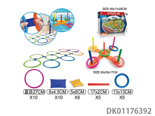 Jumping house and throwing sandbags and five ball hoop (3 in 1)