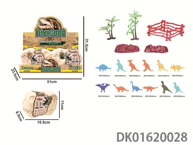 Dinosaur skeleton head storage box (12 3-inch dinosaurs, 2 trees and stones, and 1 fence) set of 6PCS/BOX