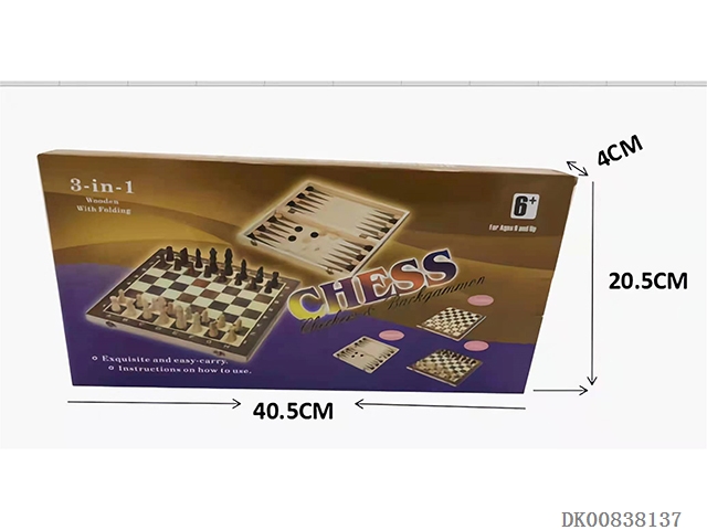 Wooden three in one chess