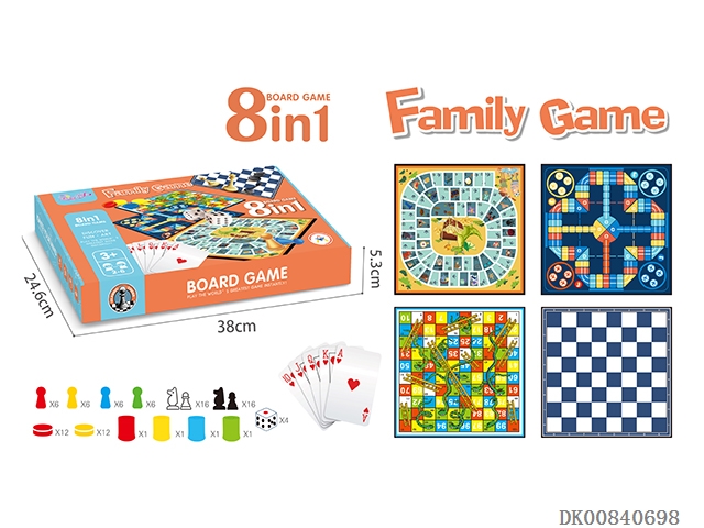 Wooden 8 in 1 chess (5 pieces, flying chess, 1 body noble, checkers, beast fighting chess, snake chess, military flag, chess)
