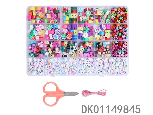 Soft pottery and rice beads, letter beads and partition beads, pendants and lobster clasps, clasp thread scissors (48 squares)